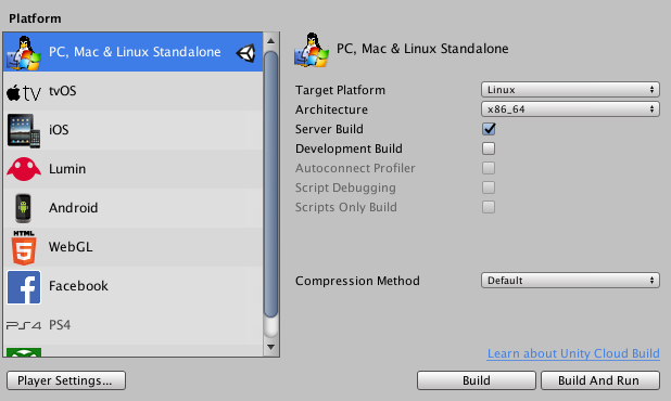 Step 1: Build the server in Unity